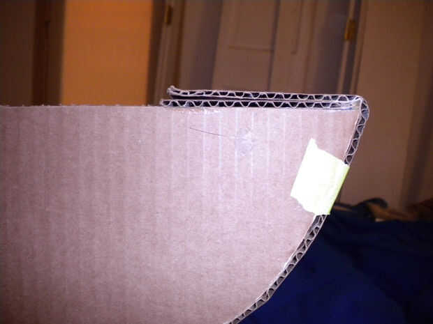 Sujeta una junta en la mesa, cuadrada hasta el borde. Basta que la Junta Directiva como una guía para mantener las pliegues/roturas a lo largo de la veta. Coloque la piel contra la placa guía, colgando sobre el borde de la mesa. Pulse un tablero de 30" en el borde y voltearse a un pliegue. Una vez cómodo haciendo esto, rápidamente puede deslizar el cartón otro 1" snap, diapositiva y snap.