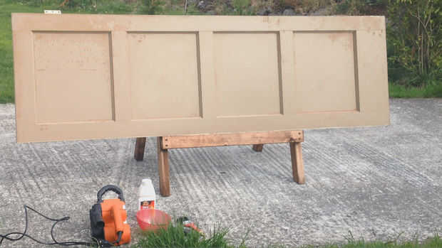 A continuación, cepille en un removedor de pintura (siga siempre las instrucciones del fabricante, la seguridad es la prioridad número uno cuando se utiliza este material). Una vez que fue ampollas raspada y le dio un rápido manguera abajo.