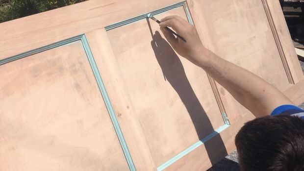 Utilizando algunos pintura vieja tuve chutando alrededor en el cobertizo (huevo de pato azul) pinté el bisel marco interno (ver imagen).