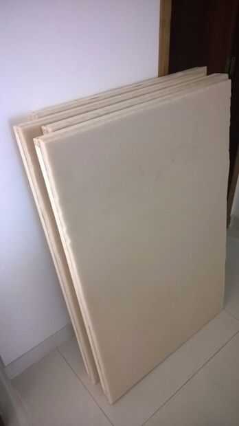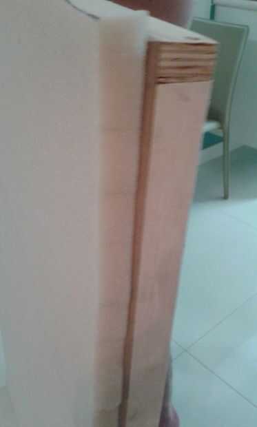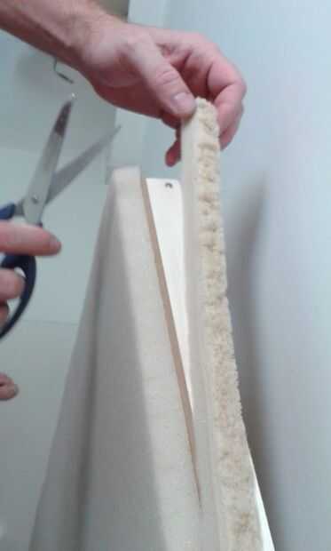 A continuación cortar la espuma del mismo tamaño que el tablero y pegar con pegamento de contacto. Recortar las esquinas después de que el pegamento se seca.