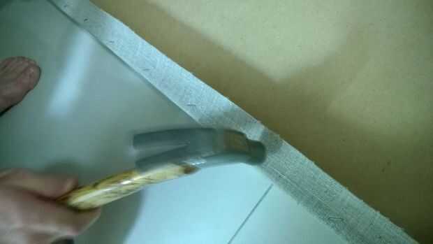 Cubra cada junta con su material favorito, que puede ser ropa, etc. de cuero. Usar una grapadora para fijar a la estructura.