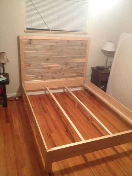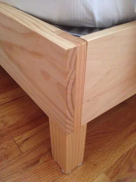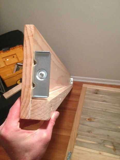 El lado carriles de la cama (80 pulgadas de largo) se hacen de 1 x 8 con 2 x 2 pegados y atornillados en la parte inferior con tornillos de cabeza avellanada gabinete (igual como en el paso 2). Los rieles se unen con soportes de carril de cama de montaje superficial.