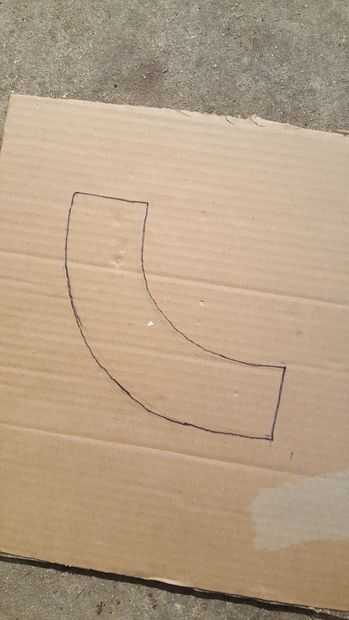 Esta parte es muy fácil! La parte difícil es conseguir las secciones curvas de la frontera corte pero la forma más simple y fácil que he encontrado para hacerlo bien la primera vez es mediante la creación de un recorte de cartón de lo que necesito. Lo hice tomando un cartón cuadrado y trazar una de las muescas en la parte superior de la Junta. Después de sólo salió de 3 pulgadas y trazó otra línea para completar la plantilla (mirar el cuadro para la referencia). Una vez que la plantilla se hizo solía y la sierra caladora para cortar dos bordes curvos de madera de plataforma extra que tenía por ahí.