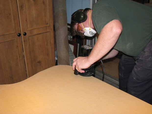 Usando su router y 3/8" redondo sobre bit router el borde de la tabla principal. No hay necesidad de hacer la parte inferior.
