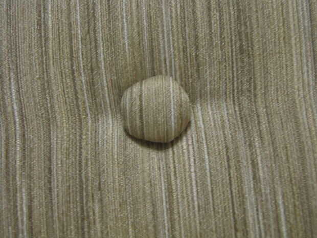 Ahora corte el hilo de la aguja. Traer una cola del hilo alrededor de cada lado de la brocheta y tirar ajustado, anudar varias veces. Mirar por encima al otro lado para ver cómo cómodamente quieres tiró, y cómo escondido el botón a sobre la espuma de la cabecera.