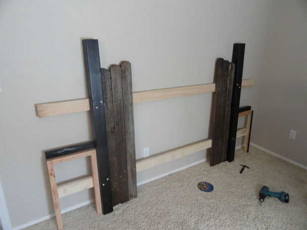 Sobre todo no quiero cortar los rieles nice 8'. Fueron asomando unos 14" en cada lado, así que pensé ¿por qué no seguir el tema de cerca junta hasta los extremos de los rieles... Ate todos juntos... y algunas mesitas de noche poco lindos para ir con la cabecera?