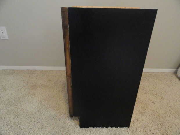 ¿Imagen #4 ~ imprimación y pintado a los lados del armario en negro satén así--cuidadosamente evitando el marco frontal de cedro para conservar la revelación--no está mal para contrachapada shop barato, eh?