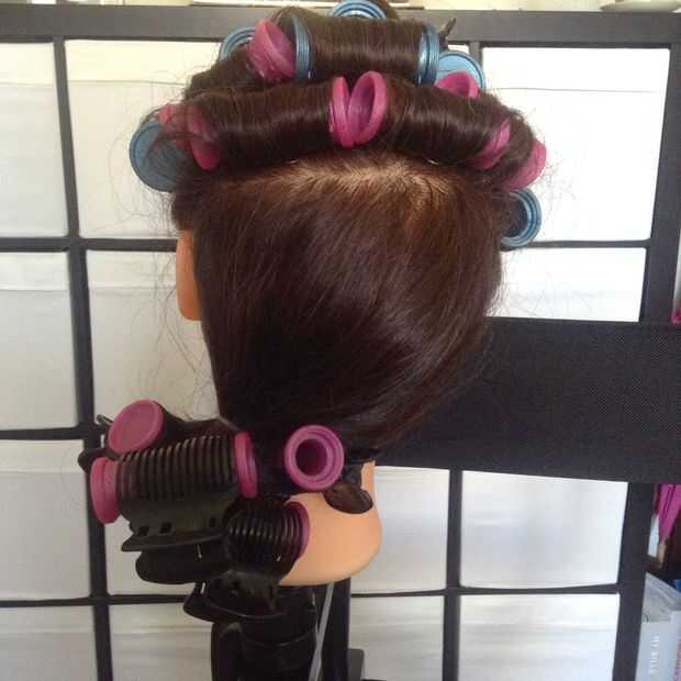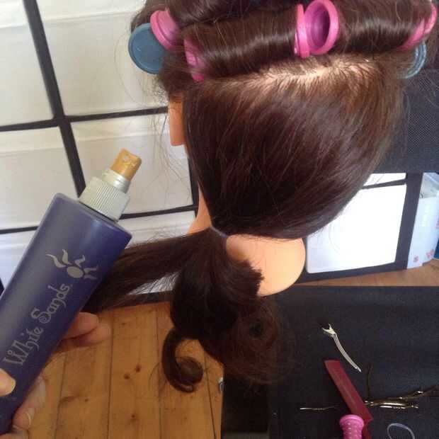 Cada sección del aerosol con textura líquida y colocar la sección de cola de caballo a rodillos calientes tamaño medio-pequeño.