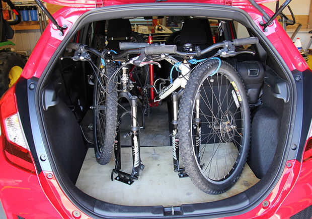 Caben dos bicicletas de montaña y dos personas en un 2014 Honda Jazz (Fit) (11 / 14 paso)