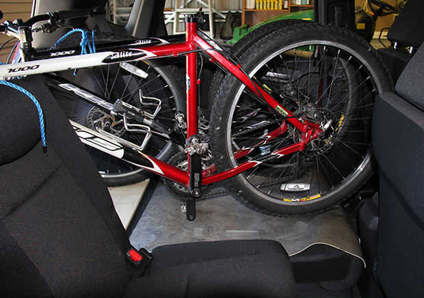 Caben dos bicicletas de montaña y dos personas en un 2014 Honda Jazz (Fit) (12 / 14 paso)