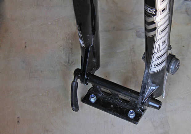 Paso 6: Colocar una montura de horquilla para horquilla delantera de una bicicleta.