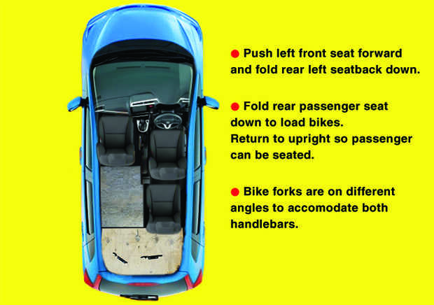 Recuerde, usted quiere poner dos bicicletas en mantener así el primero de ellos al lado detrás del asiento del pasajero delantero.