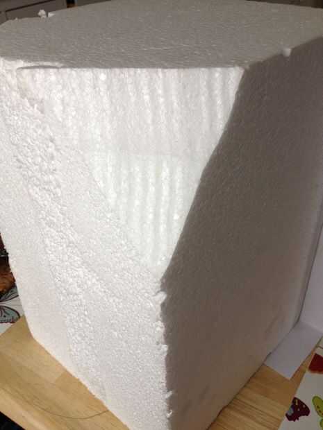 1, un bloque de espuma de poliestireno (más grande que una cabeza)