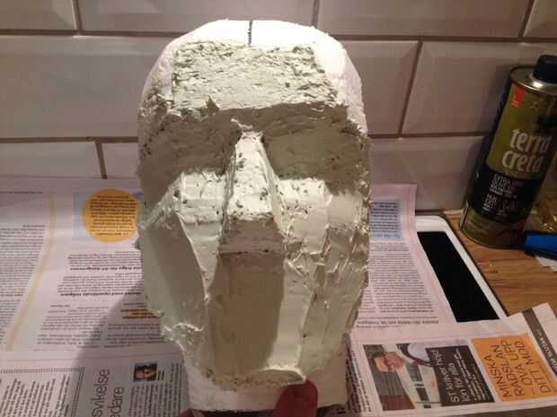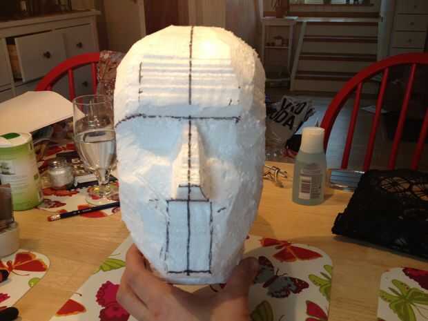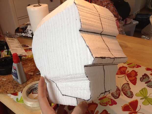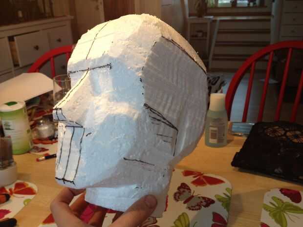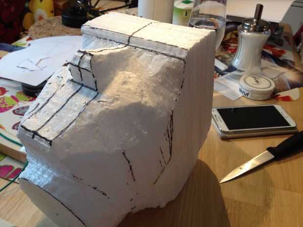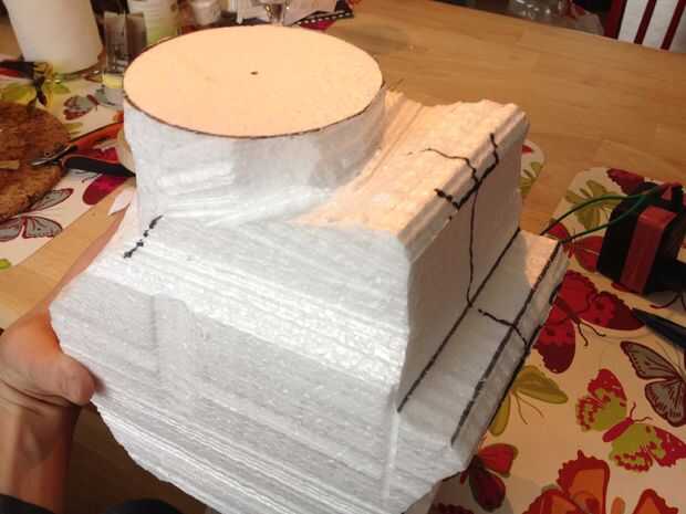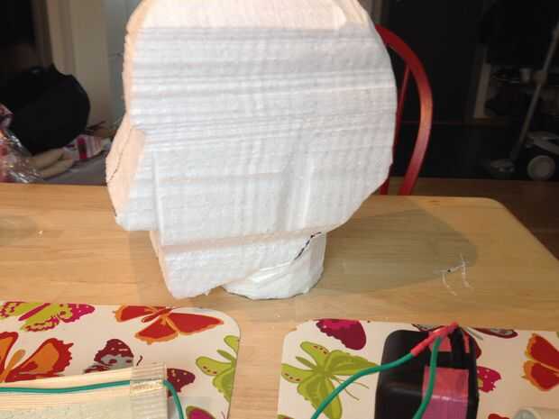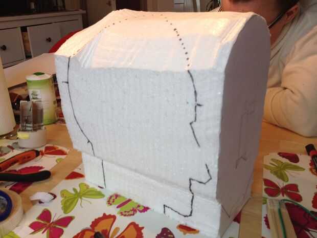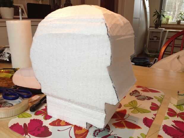 3, luego usé mi nunchucks de corte de espuma de alambre para cortar más o menos la forma de la cabeza.