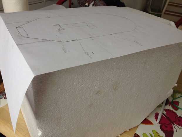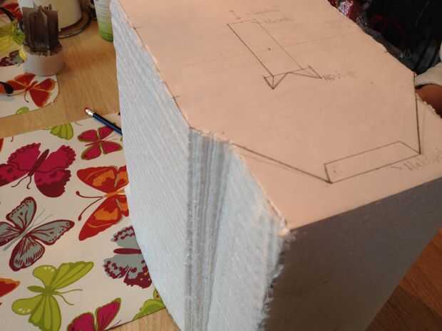 2, luego transferir el diseño al bloque de espuma de poliestireno.