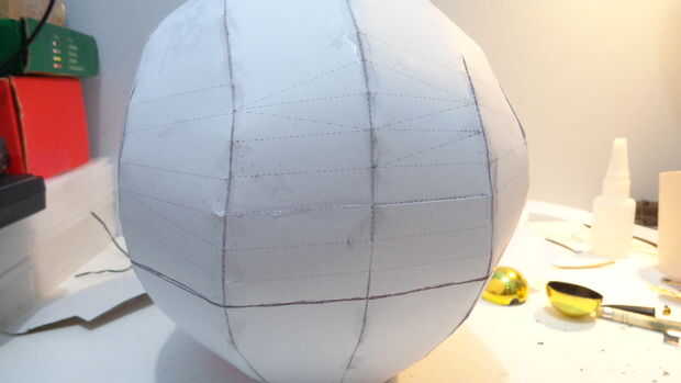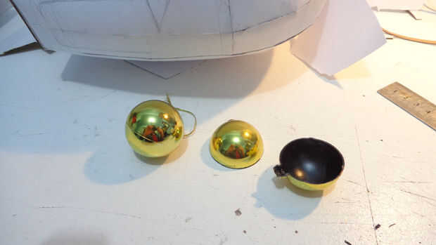 Con una bola de árbol de Navidad en medio he hecho las cavidades de los ojos. Poner en su lugar con pegamento caliente.