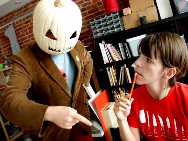 Con su nuevo encontrado poderes calabaza, acosan a sus compañeros de trabajo, especialmente las camisas con cuchillos sobre ellos.