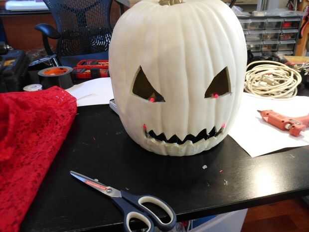 Este es el verdadero rey de la calabaza, no ese impostor esqueleto, Jack Skellington. Su cabeza fue hecha originalmente de papel maché, cubierto con cinta de papel de aluminio, pero no sobrevivió a almacenamiento de información. El nuevo jefe se hace