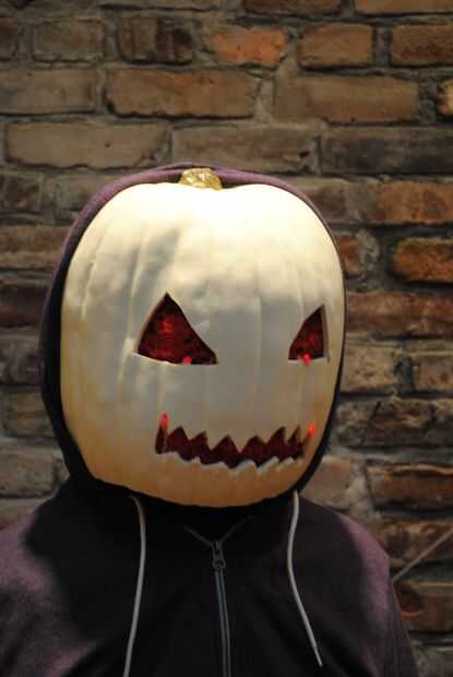 Este es el verdadero rey de la calabaza, no ese impostor esqueleto, Jack Skellington. Su cabeza fue hecha originalmente de papel maché, cubierto con cinta de papel de aluminio, pero no sobrevivió a almacenamiento de información. El nuevo jefe se hace