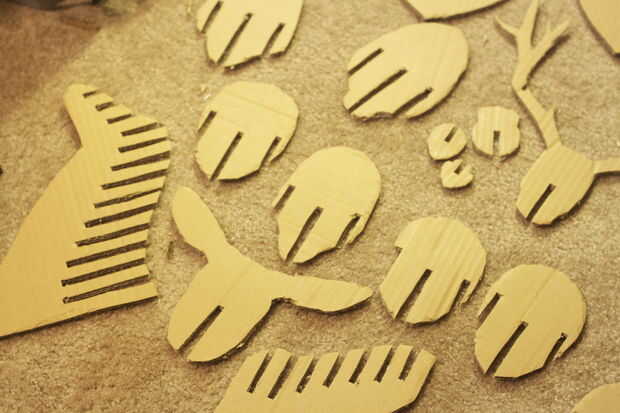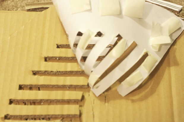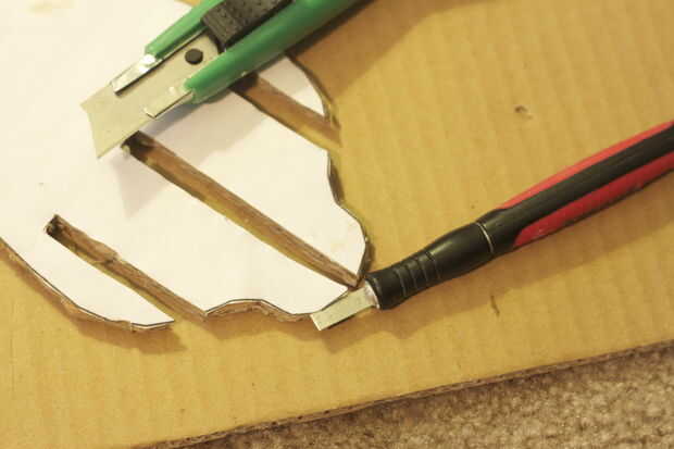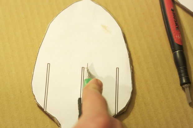 Con cuidado corte las muescas si su cartón es más gruesa que la plantilla no olvide de centro de los cortes. (tenga cuidado de no cortar o extraer la pieza que no debe ser, yo lo hice pero no gran cosa)