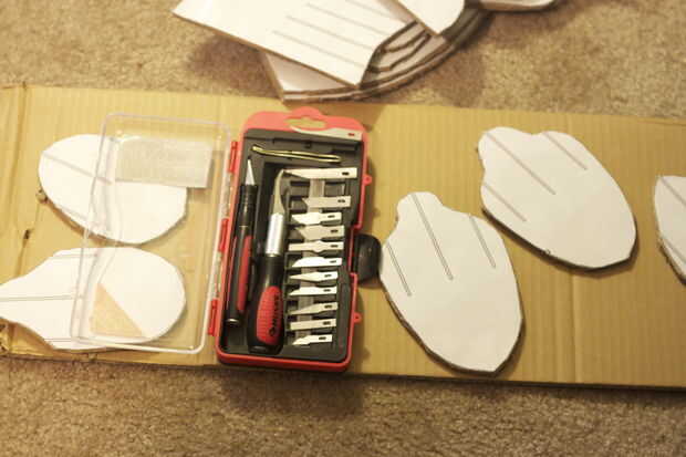 Esto es donde tener un cuchillo del exacto sistema viene muy bien. Debido a los diferentes tamaños de cartón grueso, utilice las líneas impresas más como guías vs reales. Por suerte para mí tenía un perfecto cuadrado de cuchillo del exacto para mi cartulina.