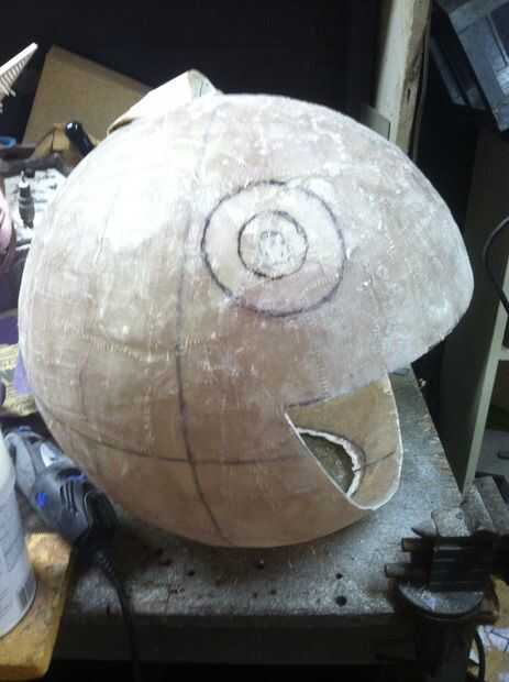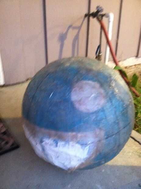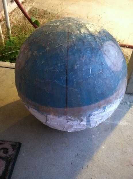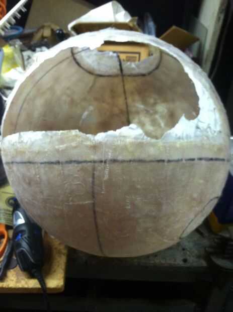 Después de la cáscara se acumula y se seca, pop el balón, recortar el exceso - usé una Dremel con un disco de corte. Se sentía tan delgada con tres capas de fibra de vidrio, pero muy rígido.