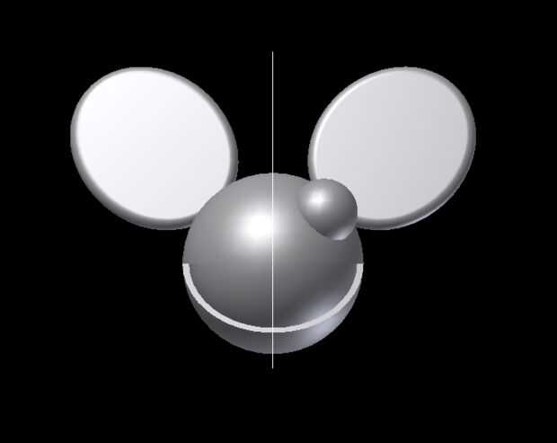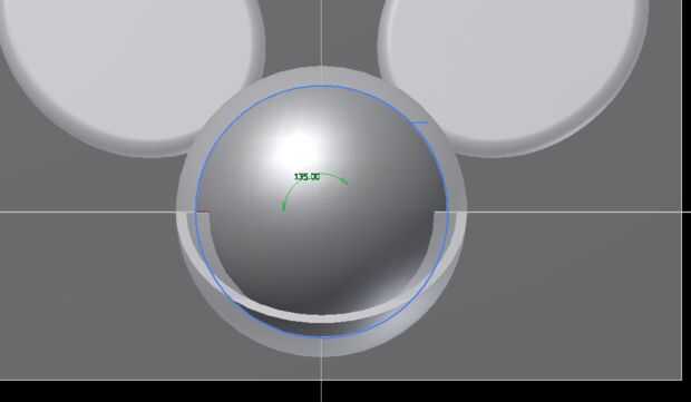 Usted tendrá que hacer su vertical llano visible otra vez y desplazamiento desde que 3.5" y crear un dibujo 2D en que. Del centro, crear un círculo con un diámetro de 12,125"(debe quedar casi perfecto en la parte de la esfera) luego dibujar una línea a 45 grados hacia el borde del centro. Marca este punto porque vas a borrar esa línea y volver hacia el centro de la mitad de una pulgada. Esto marcará el centro del ojo. Desde aquí pone un círculo con un diámetro de 5.25" y gira. Usted debe poder reflejar los ojos y los oídos si eres muy perezoso como yo.