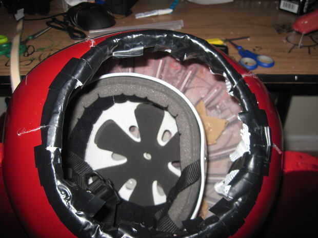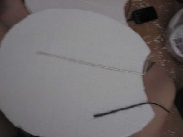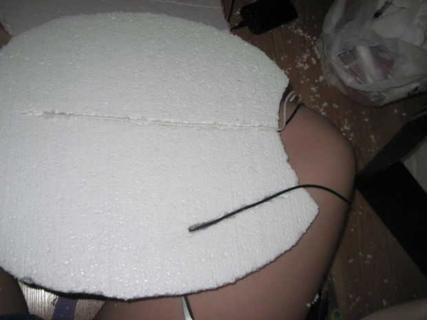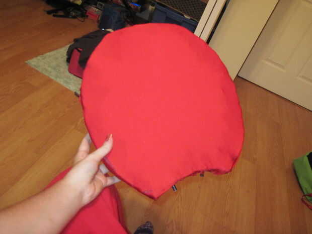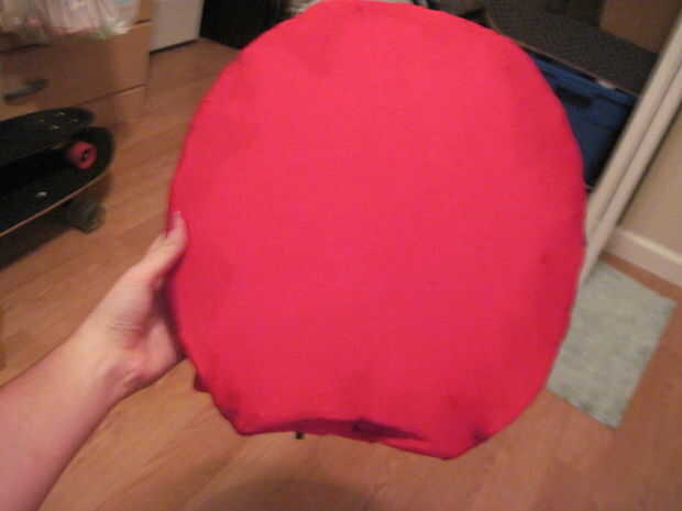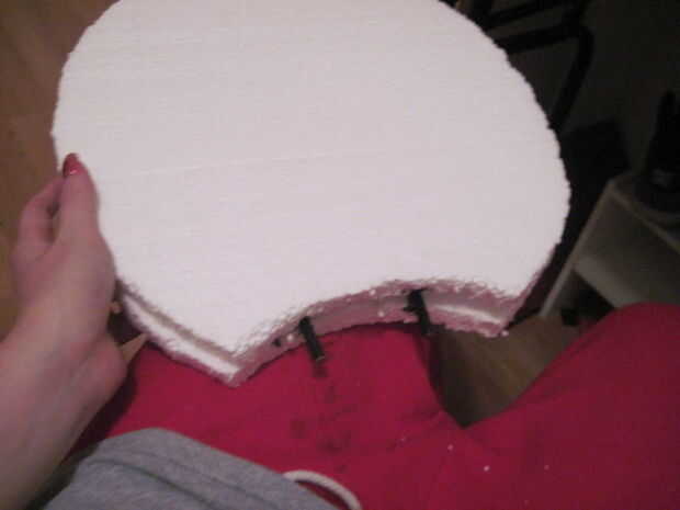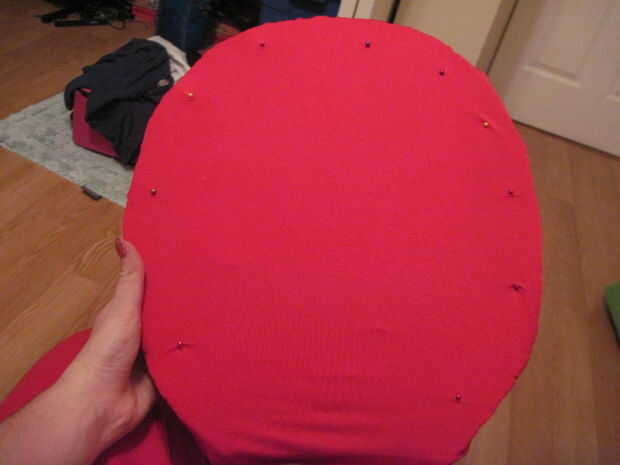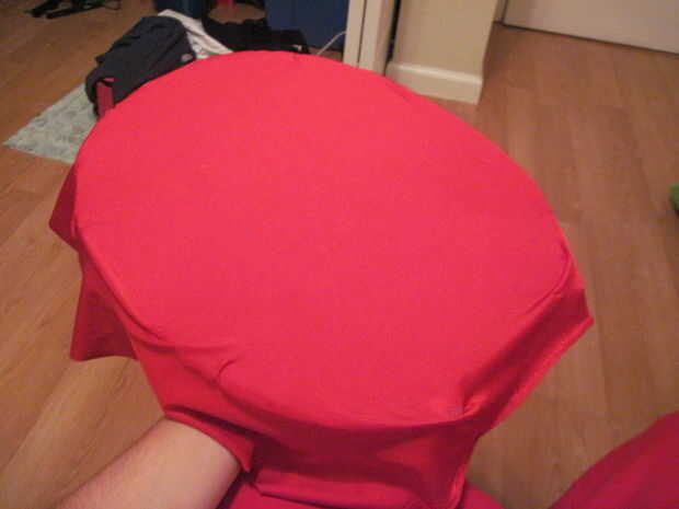 3. Tome a la tela de Lycra rojo y pegamento caliente el material a la styrafoam.
