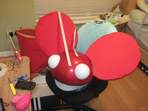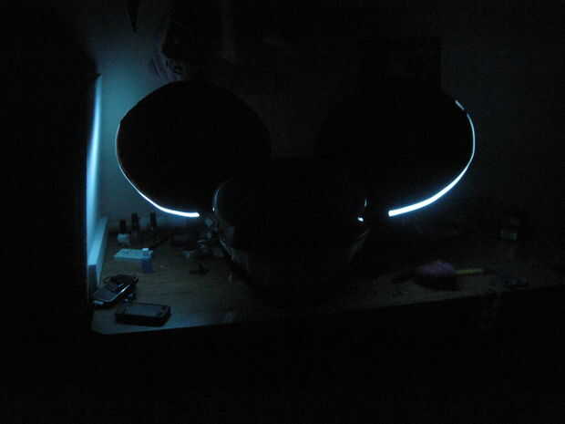 4. Si usted elige hacer las orejas iluminan demasiado, también línea los lados de la oreja va el velcro y la cinta de el con velcro y péguelos juntos.