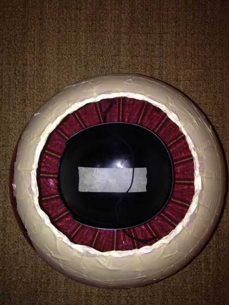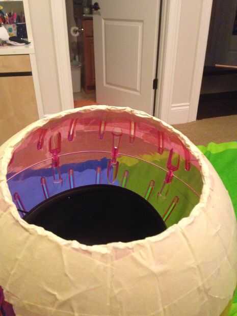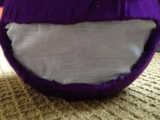 4. ahora usted tiene la boca y el orificio de la cabeza. Ahora usted cortará el orificio central para que pueda caber la cabeza a través de