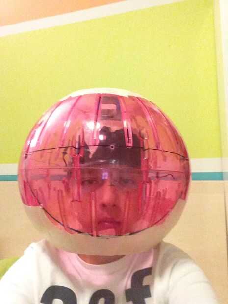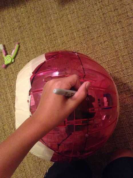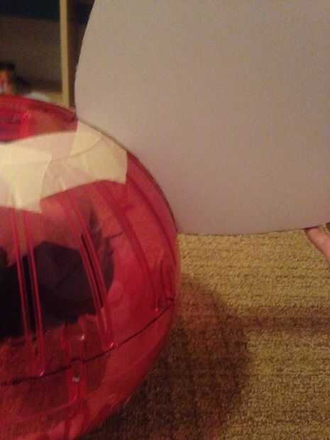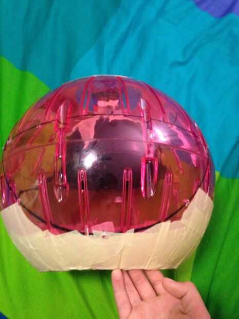5. para mí si no tengo Legos para crear un espacio entre el casco de juguete y la bola del hámster la bola descansaría sobre mis hombros. Ahora si necesitas hacer una caja de lego y caliente del pegamento del casco y la bola de hámster con los Legos entre