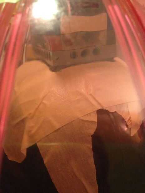 7. después de esto de que le pones cinta pato alrededor de los lados hicieron el orificio principal por lo que no te rasguñe o corte