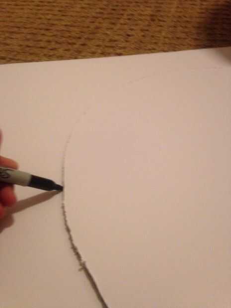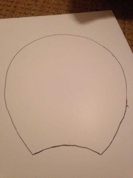 8. para este momento hemos terminado con la cabeza y pasar a los oídos. Primero se traza la oreja sobre el cartel Junta (es mi rastro 14" a través y 15.5" de largo) Asegúrese de que su rastro caben en la cabeza (imagen 10 es lo que me refiero).