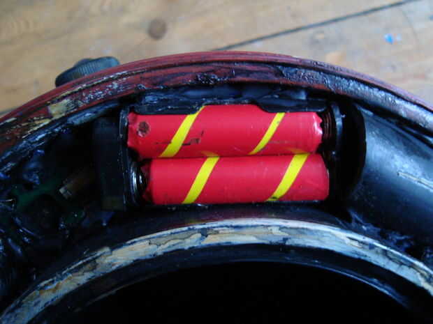 Manija plástica del cubo no se ven muy bien. Reemplazarlo o cubrir con cuero habría sido grande, pero estaba acabando el tiempo y se aburra rápido. Así simplemente appliedPVA pegamento a lo largo de la empuñadura y lo envolvió inblack lana.