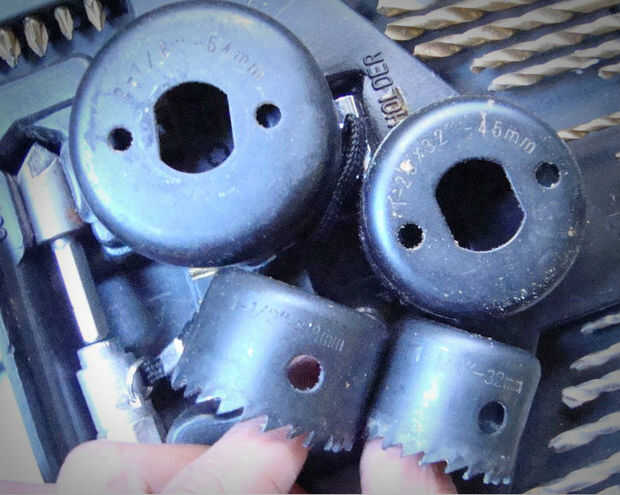 - taladro y brocas: Se utilizaron 56mm y 38mm sierras brocas como cuchillo de uso general de tamaños más pequeños para cortar el cubo