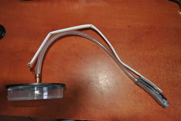 Lo único por hacer es añadir algún tipo de estructura para el proyecto, puesto que necesita algo para mantener en posición. Encontré un tubo de metal que usaba, pero todo lo otro que puede soportar el peso de la ducha va a funcionar. Pégala a la parte de la ducha regular y a la cabeza. Puede usar algo que es fuerte pero flexible, porque puede ajustar la posición de la cabeza.