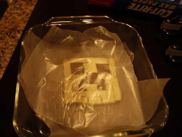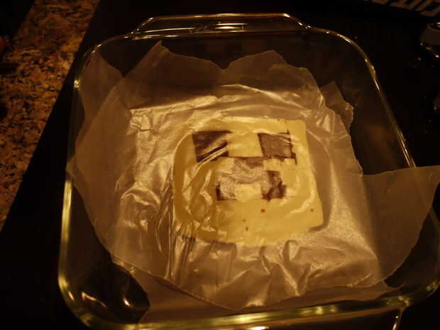 Ponga un trozo de papel de cera sobre el chocolate.