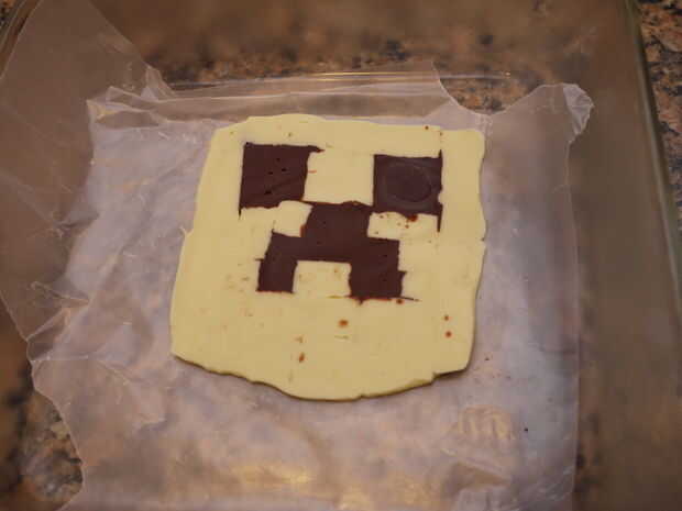 Se encontró que la capa de papel de cera inferior quedó estancada en el plato de vidrio. Unos segundos en el microondas fija y pude quitar la pieza blanda del plato con un servidor de pastel. Entonces fue de nuevo a la nevera para endurecer otra vez.