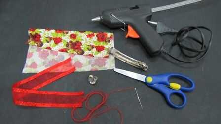 Paso a paso cómo hacer esta flor de tela.Paso 1: Elementos necesariosUn arma de pegamento caliente y pegamento stickUn par de tijerasUn encendedorHilo y agujaUna reglaAlgunos encajesAlguna tela del saténUna perla o botón---y papelPaso 2: Medir alguno
