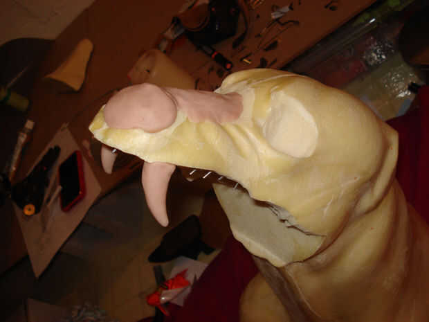 Añadir el sculpey. Puede que desee a partes más anclaje en la espuma con el alambre de armadura gruesa. Tenga en cuenta esto en la versión de arcilla rosa. Esculpir lejos! Recuerde añadir pieles a añadir algunos a granel a la escultura así que trate de no hacer cosas demasiado gruesas como los músculos del hocico facial.