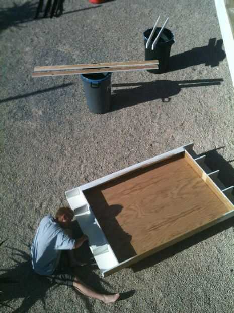 , Mi hermana y yo pintada toda la madera que sería visible. (tiene sentido perder el tiempo y la pintura en cosas no) La estantería, el 1,5 "X 4" que sería el marco externo y 1" x. 5" para los dos cuadros de interiores más pequeño.