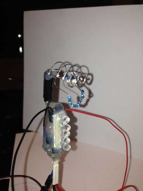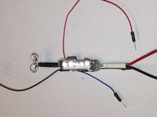 Sus piernas se hace del alambre de la manía de recubierta de encogimiento de calor negro y rojo a positivo de negativo y se sueldan a la alimentación principal alimentar el Arduino es decir 5v y GND.