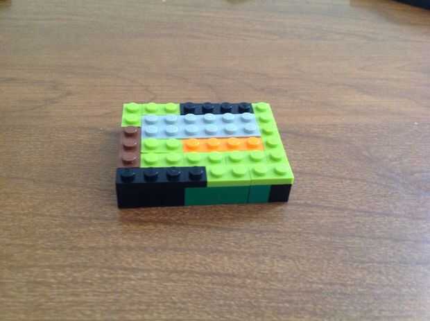 1 ladrillo plano negro de 1 x 4 9 ladrillos planos de 1 x 2 verde claro 1 ladrillo plano marrón 1 x 3 1 1 x 4 naranja ladrillo plano 1 ladrillo gris de 2 x 6 1 ladrillo negro de 1 x 4