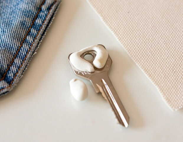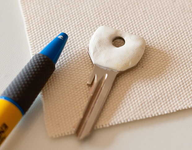 Utilicé un trozo de tela para imprimir una textura en la superficie de la pasta. Aquí es donde usted puede hacer su muy característico de las llaves. Dependiendo de la tela o el objeto que usas, la cabeza de la llave será más o menos única.