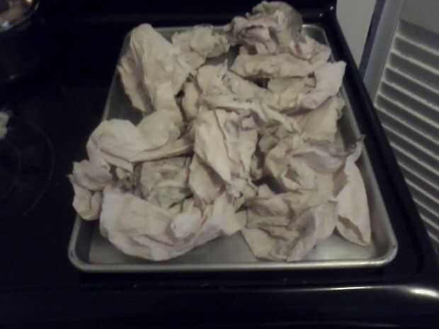 También repetí los pasos de la mezcla de café y las toallas de papel con el paño de queso de Halloween. Estos pasos deben repetirse después de secado dependiendo de cómo de oscuro es el resultado deseado.