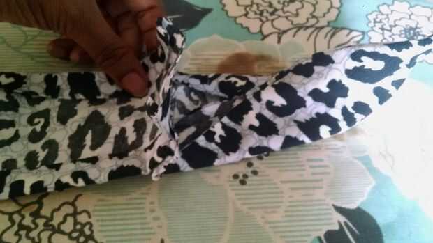 Abrir y aplanar el extremo de la conexión del oído entonces Alinee las anchuras y coser a la banda a ambos lados