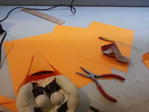 Así que usted puede eligió hacer cualquier tipo de cabeza que desee con unos tweeks pero hice un pájaro. Tuve unos problemas como el tamaño que he hecho. Pero comenzó con una base de peso ligero sculpy y luego de cortar algunos cartulina en un punto y dobla sobre para envolver alrededor de la sculpy como la parte superior del pico.