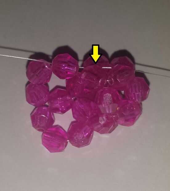 2. pasar el extremo derecho (pintado) el último grano en sentido contrario