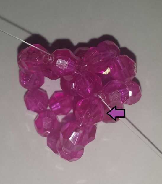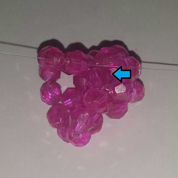 4. Pase el extremo derecho (claro) en los granos de 2 siguiente