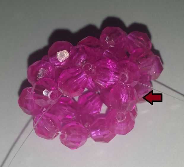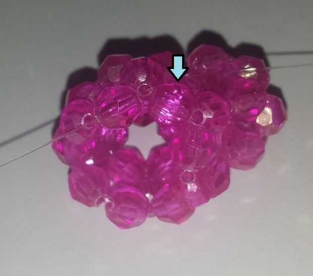 4. Pase el extremo derecho (claro) en los granos de 2 siguiente